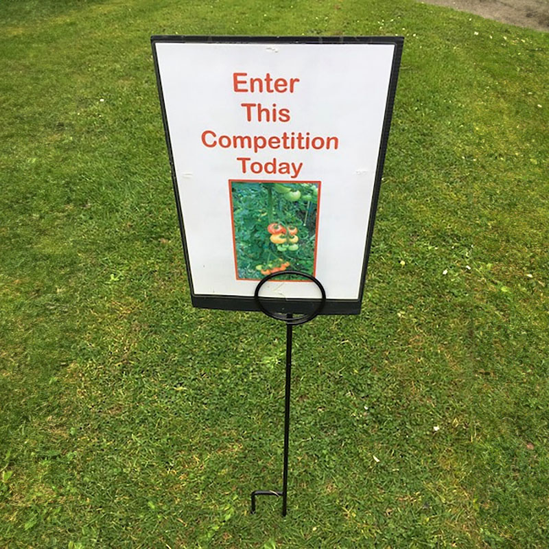 Pigtail loop at the top to hold corflute-board or thick cardboard signs.